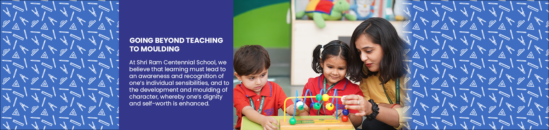 Shri Ram Centennial School in Indore (CBSE school) is an institution conceived to impart the best in education along with development of values and personality traits that groom achievers. Our pedagogy, curriculum and infrastructure are carefully designed to develop life skills, such as logic, reasoning and creativity in all our students.